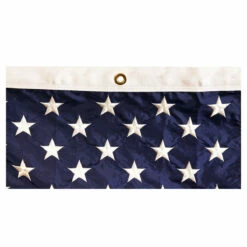 These flags have sewn stripes and bright white embroidered stars on an Old Glory field. They are constructed with heavy canvas heading material, 6 rows of stitching, roped heading, 2 metal thimbles, and one grommet centered between the thimbles. This size is suitable for flagpoles from 55ft to 90ft. These flags are 100% American made!
