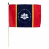 American Samoa state stick flag 4 inch x 6 inch, mounted on a 10 inch plastic stick. Flag is made from polyester and printed in bright colors to make an attractive flag. Each flag is individually sewn around the edges.
