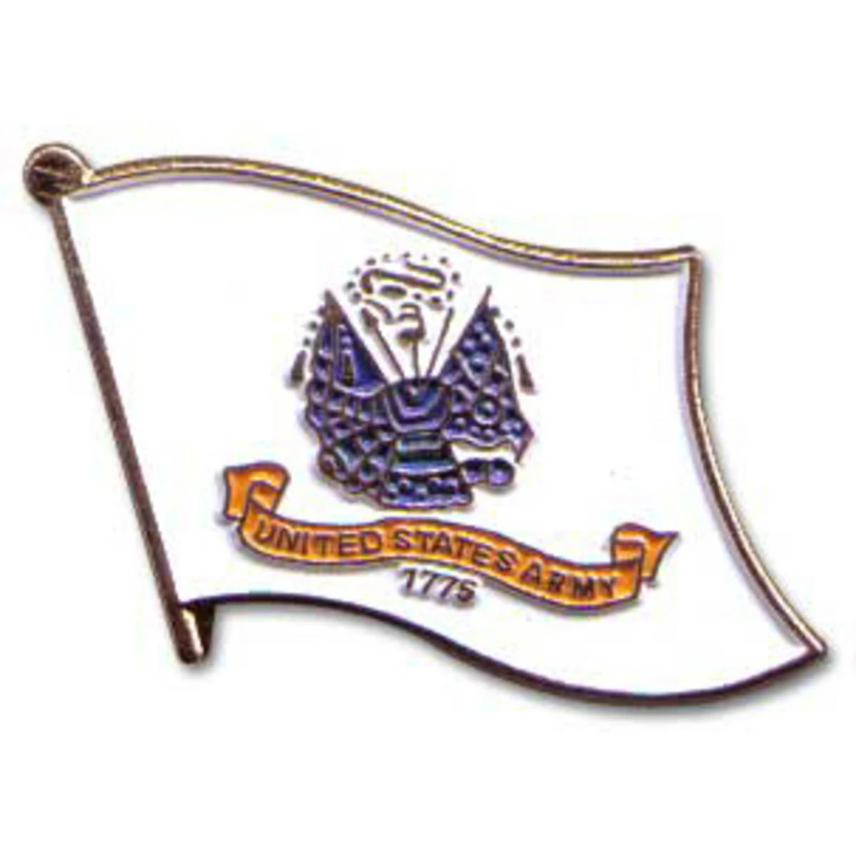 The Army flag lapel pin is a great way to show your support. Our pins cost less than our competitors, but are equal or higher quality. We sell thousands of pins a week, and we pass the savings on to you! This Army Flag lapel pin has an all gold metal lacquered design with a metal clutch pin, and baked on enamel finish. Size approx 1″ x 7/8″.