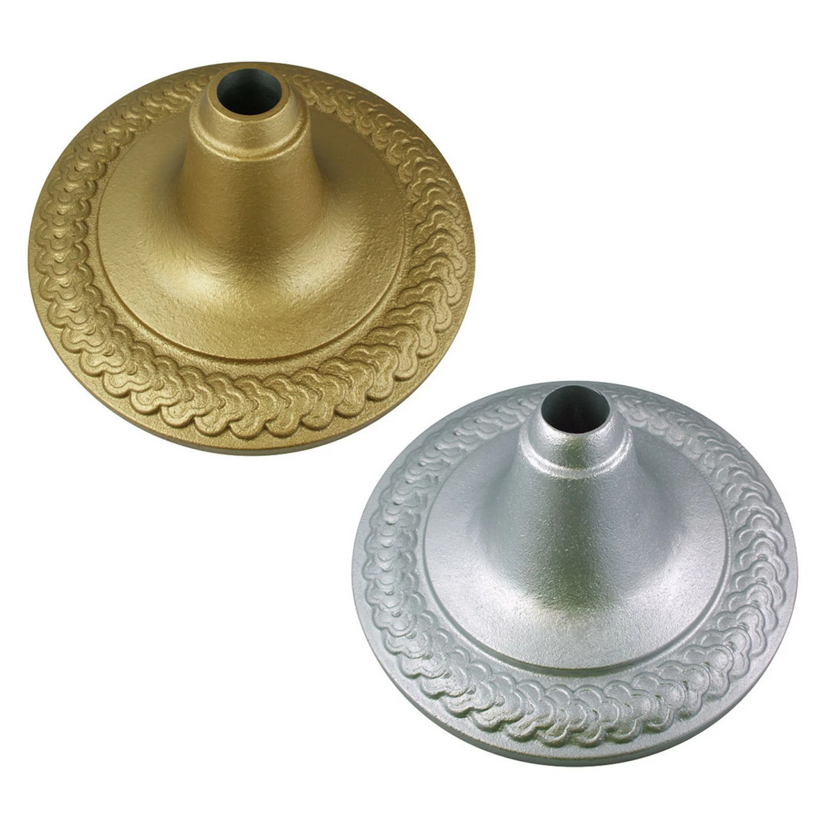 This cast aluminum indoor flagpole stand is available in gold or silver finish. Our beautifully designed flagpole floor stand has an elegant leaf design around the edge. Stand fits 1″, 1 1/8″, and 1 1/4″ diameter poles.