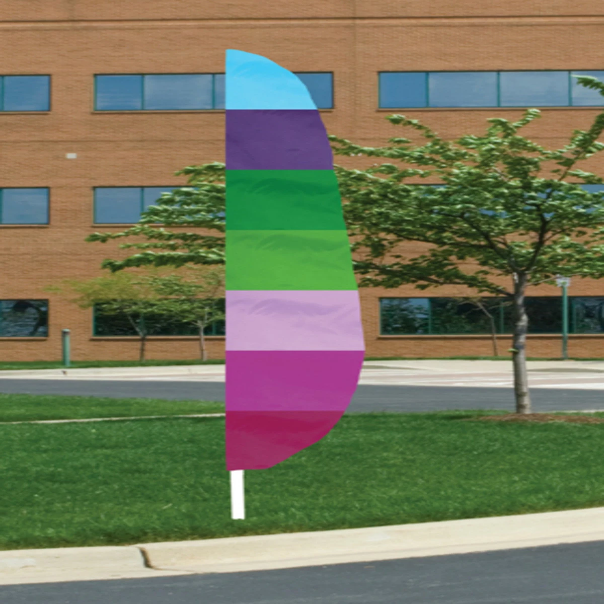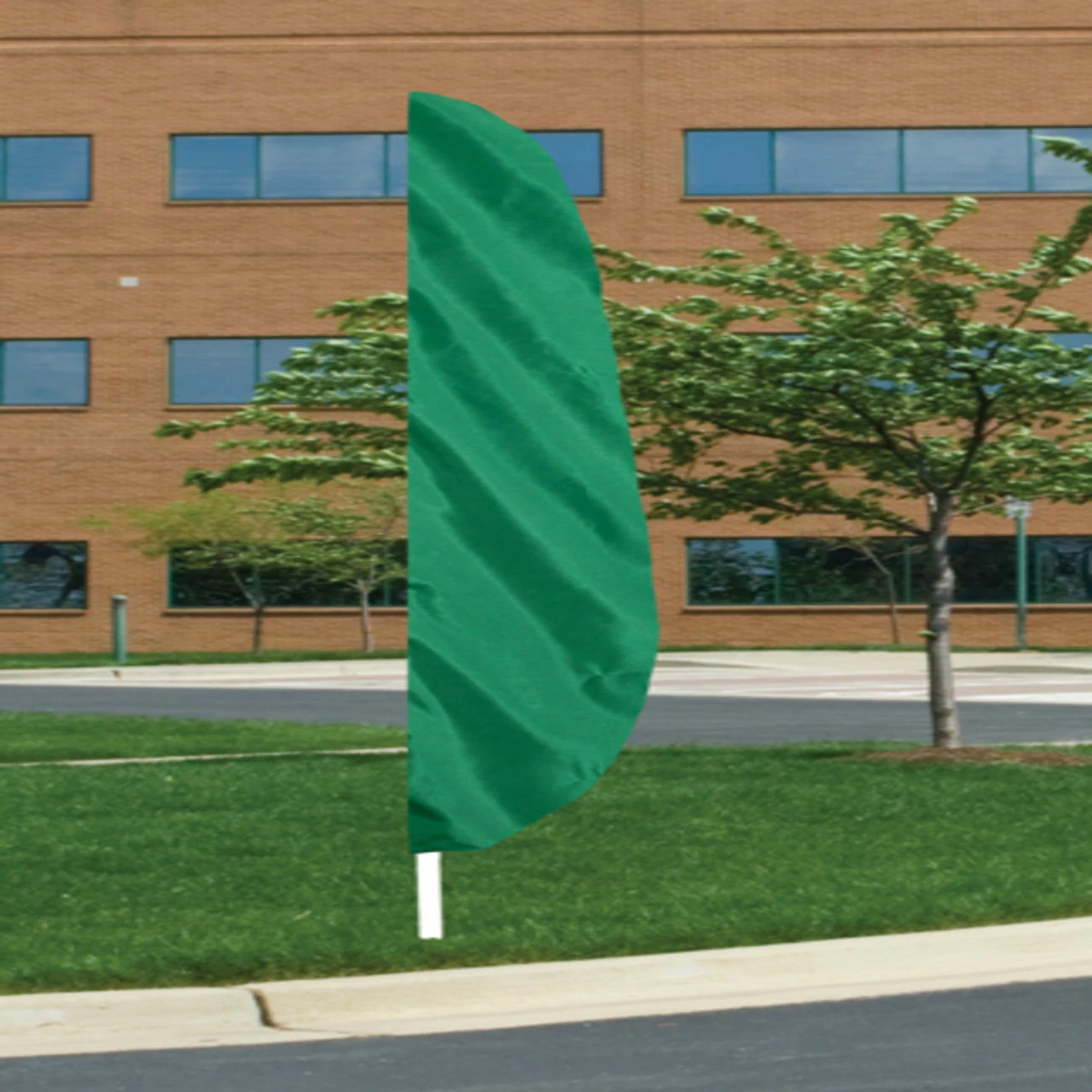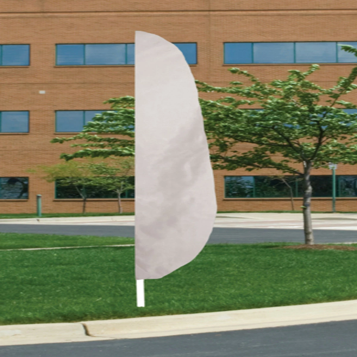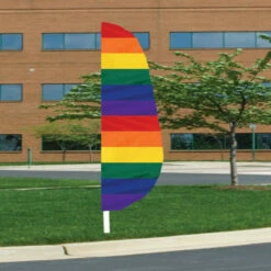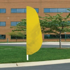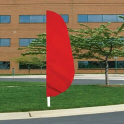 Our 12′ x 26″ Nylon feather banner flags are fully sewn. 200 Denier Nylon, designed with a pole sleeve to fit up to 1 1/4″ diameter pole. A leather tab is sewn inside the bottom portion of the header allowing a nylon flag tie (which is included) to secure the flag on to the pole. MADE IN U.S.A.