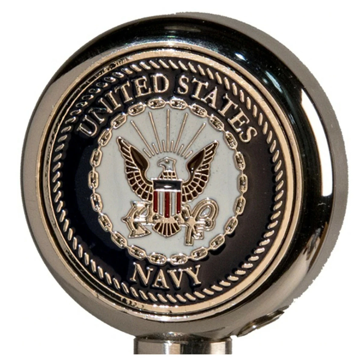 This Navy motorcycle flagpole topper is made of high quality polished stainless steel. Emblem is meticulously crafted and double-sided. This fits any of our motorcycle flagpoles. Measures 1 1/4″ diameter x 1/2″ depth.