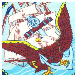 Approved by Dwight D. Eisenhower on April 24, 1959, the United States Navy flag is dark blue and contains a slight variation of the U.S. Navy Seal. The picture displays an American Bald Eagle, an anchor and a ship flying the Commission Pennant, American flag and commodore’s flag. The design is surrounded by a yellow circular rope, and the title “United States Navy” is printed on a yellow banner below the emblem.