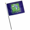 New Mexico state stick flag 4 inch x 6 inch, mounted on a 10 inch plastic stick. Flag is made from polyester and printed in bright colors to make an attractive flag. Each flag is individually sewn around the edges.