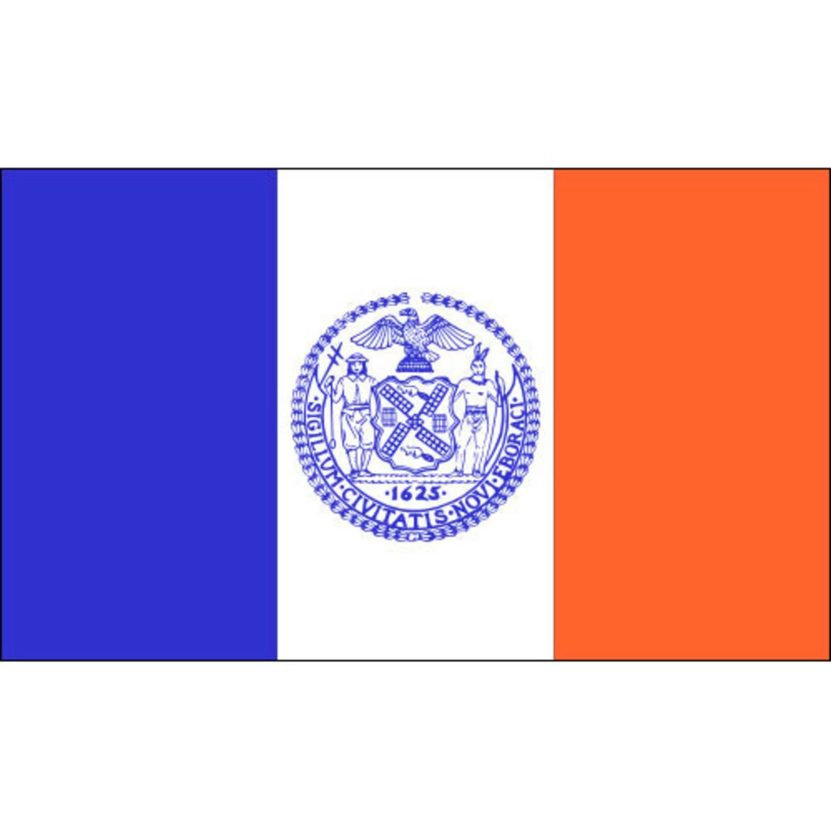 Top quality New York City Flag 3ft x 5ft Nylon made by a leading U.S. flag company from durable heavyweight nylon. Finished with a strong canvas heading and 2 brass grommets. These flags look great both outdoors and indoors. Suitable for organizations who fly the New York City Flag on a daily basis..