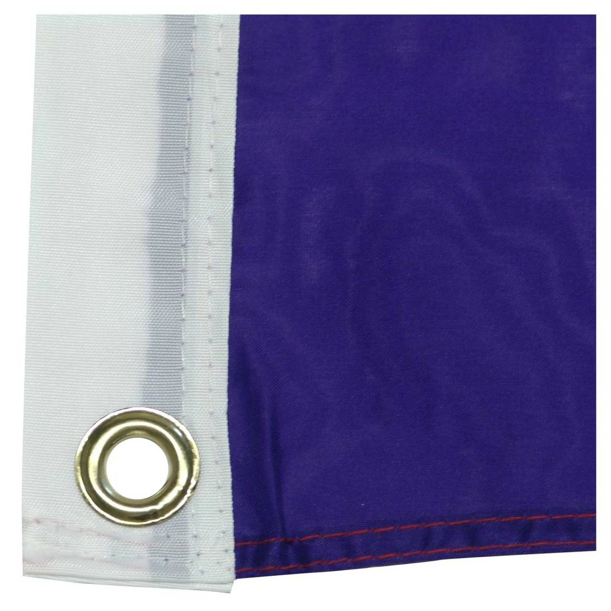 This rainbow flag is a printed Super Knit® polyester flag that is very attractive, durable and a great value. It is printed on a silky looking knitted polyester fabric. Great for use outdoors or indoor. It has a very sturdy nylon header and 2 brass grommets. They are suitable for residential display use outdoors. These flags are not as durable or as attractive as our more expensive sewn nylon or sewn polyester flags This flag may be made outside of the US. We stock this flag.