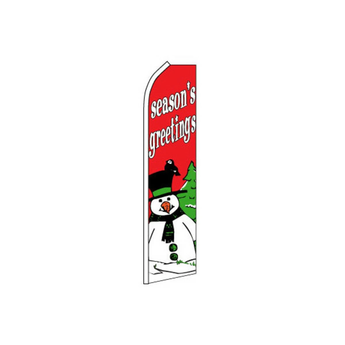 This Seasons Greetings Swooper Flag is made from a knitted polyester that is built to withstand winds over time. The design of the flag easily catches peoples attention and it doesn’t wrap around the pole. Flag measures 11.5ft x 2.5ft.