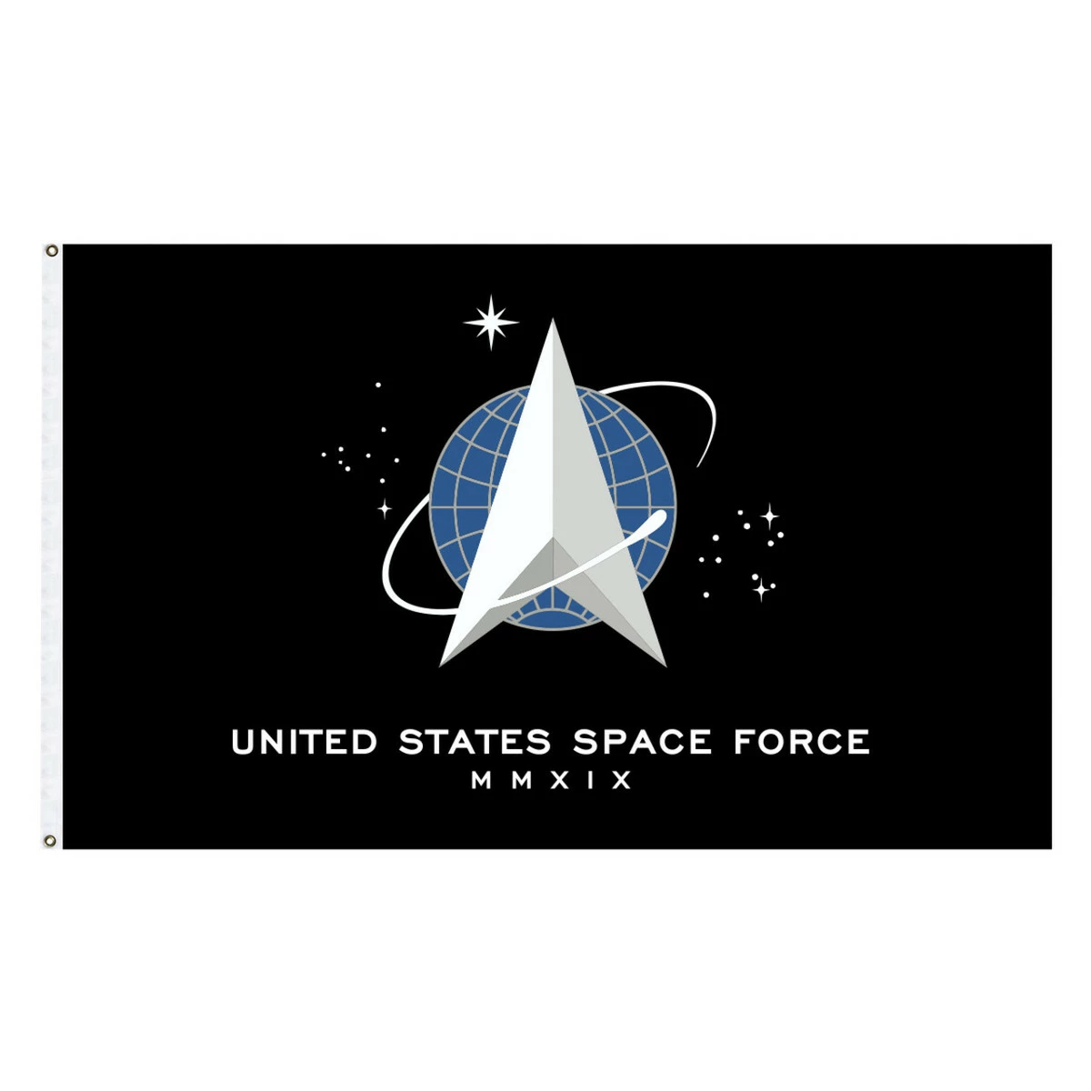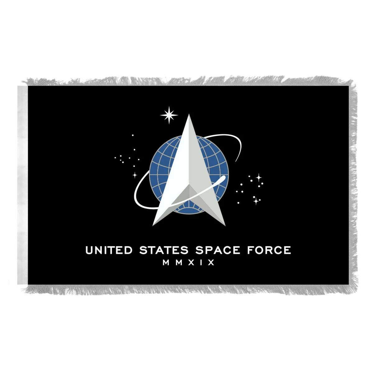Top quality 4’x 6′ Space Force flag made in the USA by a leading company from durable heavyweight nylon. They are finished with a strong canvas heading and 2 brass grommets. These flags look great both outdoors and indoors.