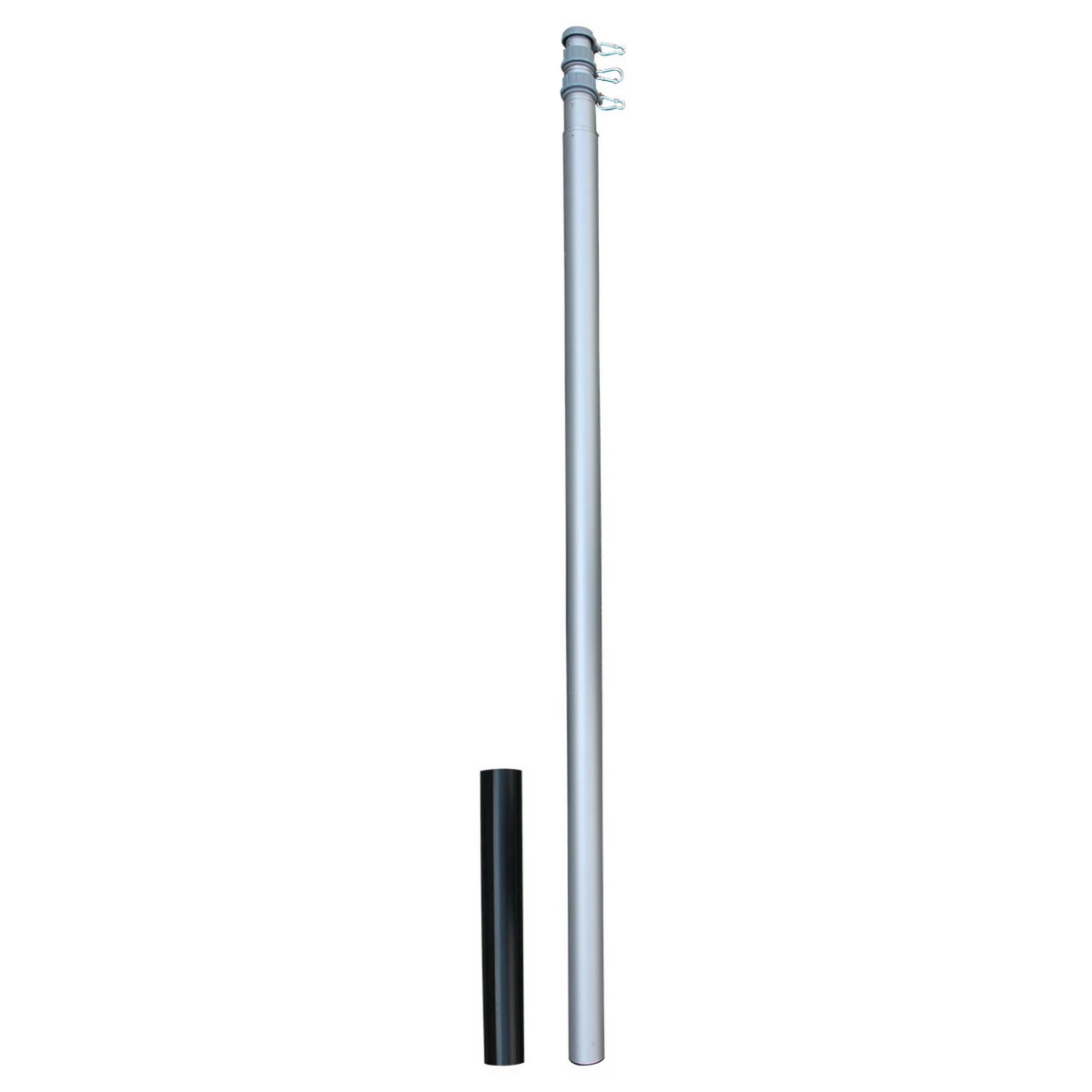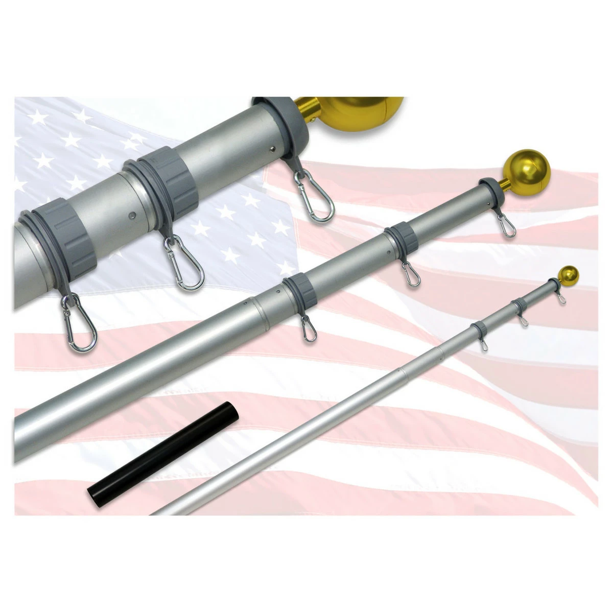 TheSuper Tough Heavy Duty Residential Flagpole comes with an American made U.S. flag and is made with sturdy anodized aluminum sections. This isn’t a telescoping flagpole but has received rave reviews from our customers.