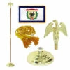 Does the golden disc on Colorado flag have any significant connect with Colorados geography? The golden disc represents the sunshine enjoyed by the state. This nylon flag measuring 3 ft x 5 ft can be accompanied by a flag base, an oak flag pole, and optional cord & tassel. You can also choose from a variety of pole toppers like 7-inch metal gold eagle, gold spear (plastic), gold metal spear, Army metal spear, gold metal parade ball, or Texas Star Metal.