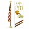 The Super Tough Indoor Flagpole Kit is the ideal kit for customers who already have a flag on hand or just have a different flag in mind they want to purchase separately. This easy to assemble kit comes in your choice of 7-,8- and 9-feet, available either as a telescoping gold pole or a faux oak pole. The base of this kit has a lovely metallic gold finish, or for a small upcharge you can get a federal indoor style floor stand. You also get your choice of a variety of toppers, that all look great in their own regard and will really help to make this indoor flagpole kit your own. These toppers include a plastic cross and or flat spear for no extra charge. With some of our other options that will cost a little more that includes the likes of the classic finial ball, the flat and army spear, Texas star and a variety of metal eagle toppers, ranging in size, coming either perched or with opened wingspans prepared to take flight. This particular flagpole kit is made by our very own brand Super Tough and is an import. Pick one of these up and see what the fuss is all about.