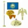 Which is the flower that is seen above the Kansas seal on the state flag? It is the sunflower. Now add this dark blue nylon state flag with golden fringe, measuring 3 ft x 5 ft to your cart. It can be accompanied by a flag base, an oak flag pole, and optional cord & tassel. You can also choose from a variety of pole toppers like 7-inch metal gold eagle, gold spear (plastic), gold metal spear, Army metal spear, gold metal parade ball, or Texas Star Metal.