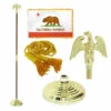 Why is the sword’s blade on the Massachusetts state flag facing upward? It is to symbolize that liberty was won through the American Revolution. This flag measuring 4 ft x 6 ft has a golden fringe and is accompanied by with a flag base, and optional cord & tassel. You can also choose from a variety of pole toppers like 7-inch metal gold eagle, gold spear (plastic), gold metal spear, Army metal spear, gold metal parade ball, or Texas Star Metal. You can opt between an oak and a telescoping flag pole.