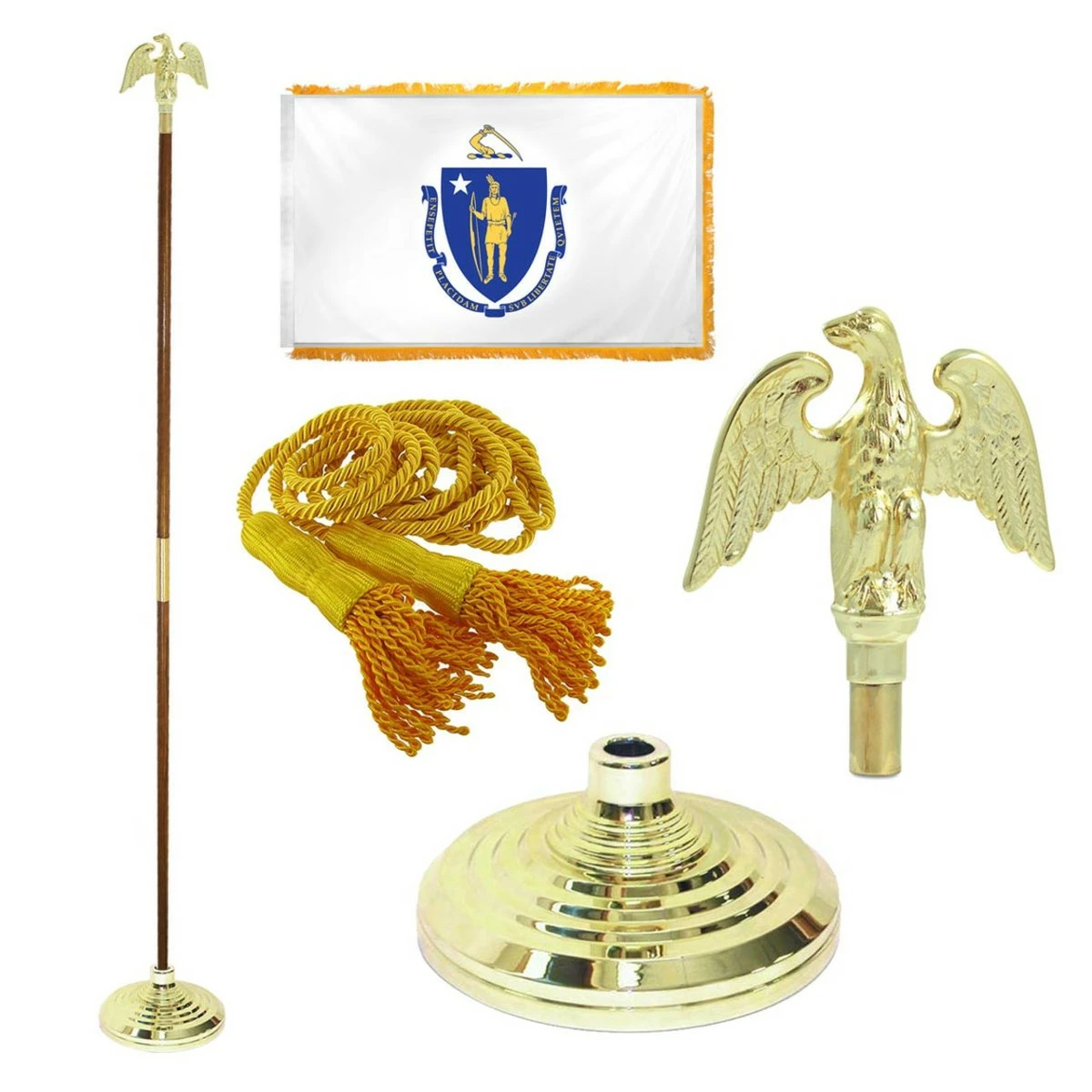 Super Tough Massachusetts 4ft X 6ft Flag, Telescoping Flagpole, Base, And Optional Tassel