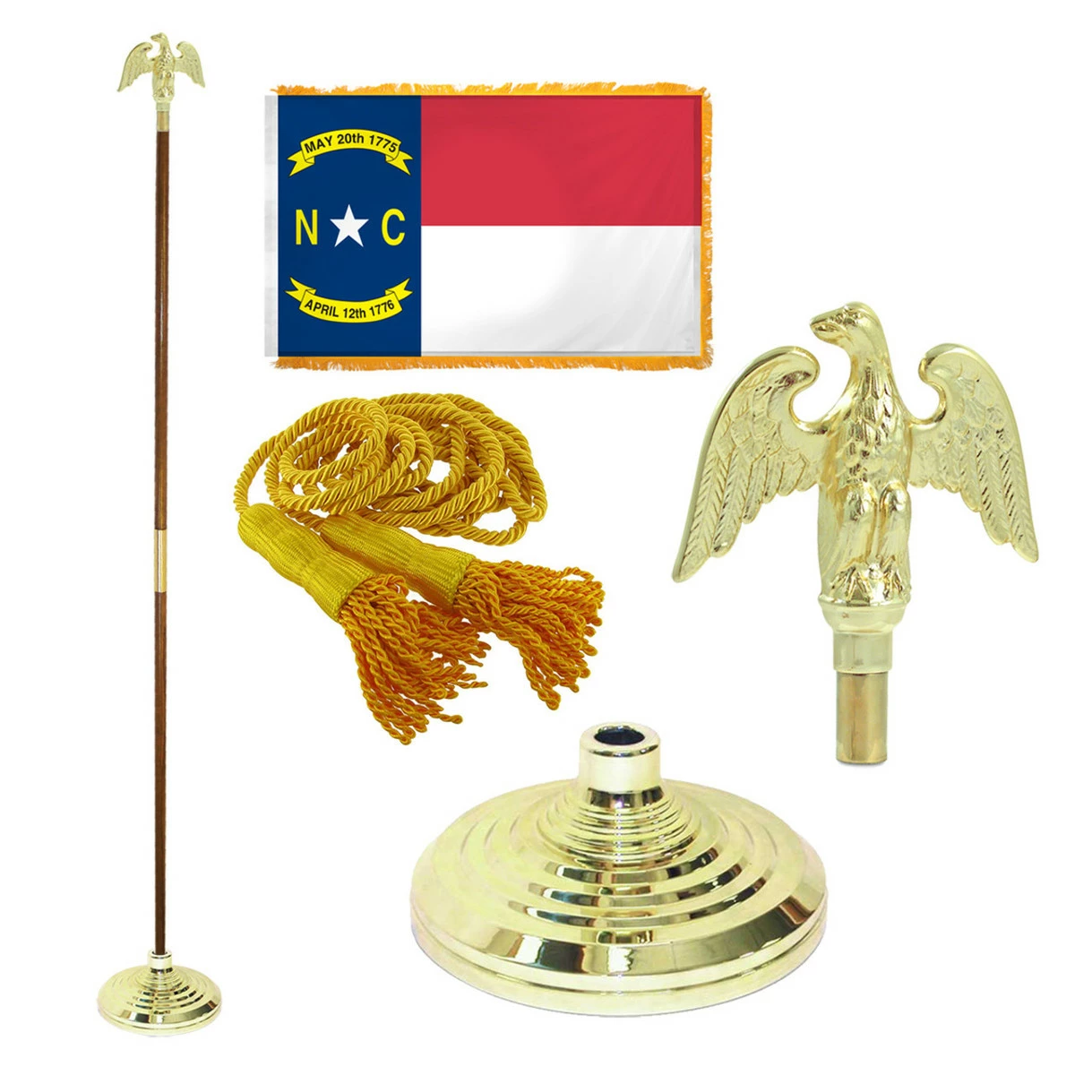 Super Tough North Carolina 3ft X 5ft Flag, Flagpole, Base, And Optional Tassel