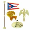 Do you know the significance of the three golden sheaves of wheat on a Pennsylvanian flag? They represent the fertile fields and wealth of human thought and action. Add a 3 ft x 5 ft flag with a flag base, an oak flag pole, and optional cord & tassel into your cart. You can also choose from a variety of pole toppers like 7-inch metal gold eagle, gold spear (plastic), gold metal spear, Army metal spear, gold metal parade ball, or Texas Star Metal.