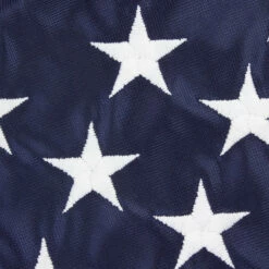 This Super Tough 8ft x 12ft American flag is made from a durable spun polyester, which is the best choice for 24/7 use. It has fully sewn stripes and embroidered stars with a strong white header and 4 rows of stitching on the fly end for added durability. The embroidery creates a classic and authentic look.