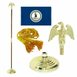 The Indoor Virginia Flag with White Fringe and Pole Kit will look great in your business, school, church, courthouse, or home. We stock all the US flag, all US states, most US territories, all US military services, and the Christian and Israel indoor flags. We sell so many that we get a great deal, so we are passing the savings on to you!